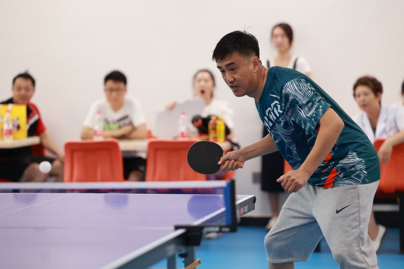 比賽現(xiàn)場氣氛十分熱烈,歡呼聲、喝彩聲響成一片。在乒乓球混雙比賽中,師徒組合、院長組合、夫妻組合、母子組合,都配合得相當默契,強強聯(lián)手,珠聯(lián)璧合,絕殺激烈,扣人心弦。經(jīng)過7天的激烈角逐,各參賽隊員取得了優(yōu)異的成績。